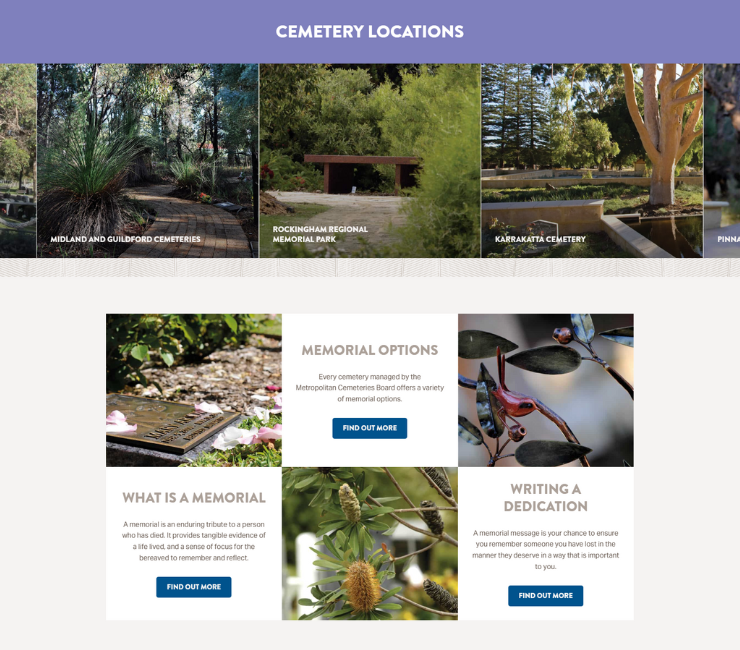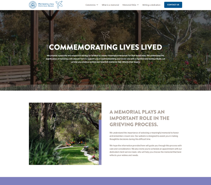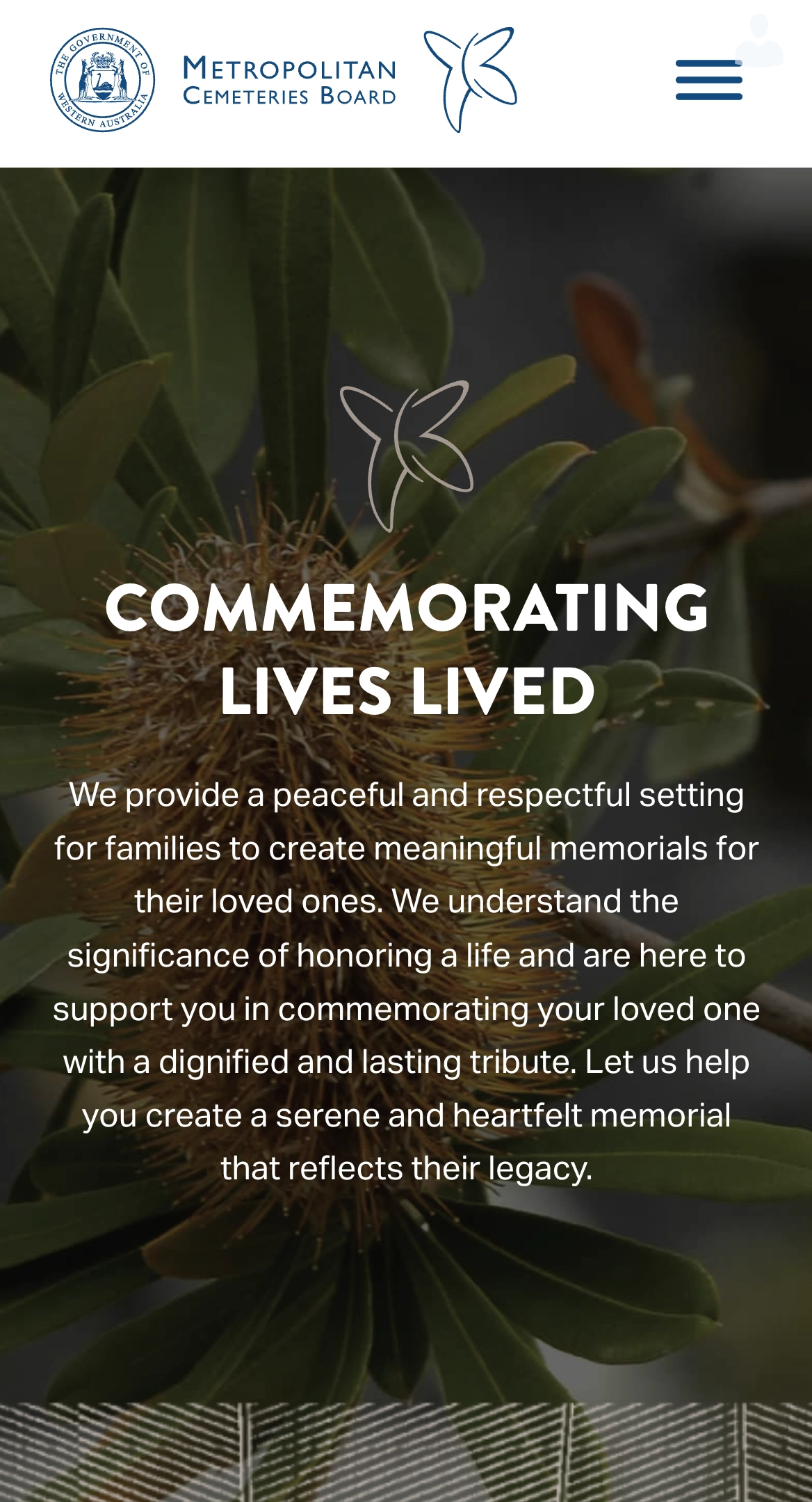 The Metropolitan Cemeteries Board (MCB), responsible for seven cemetery and memorial sites across Perth, offers burial, cremation, and culturally sensitive memorial services with compassion and integrity. However, their previous website no longer reflected the quality or accessibility of their service.
